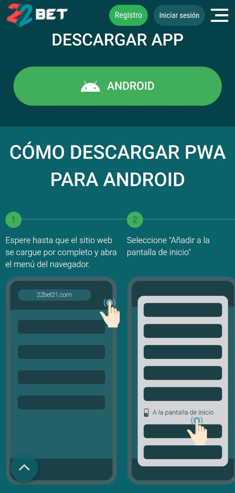 Disfrutar de las apuestas desde tu dispositivo móvil es una posibilidad con 22Bet. La casa de apuestas ofrece una versión móvil del sitio para escritorio, así como también una app móvil que podrás descargar por medio de la página escaneando un código QR. También puede realizar de manera manual siguiendo las instrucciones que la misma plataforma te facilita. Y no tienes de qué preocuparte, tanto la versión de navegador móvil como la aplicación 2Bet cuentan con todas las funcionalidades del sitio, solo que de una forma más optimizada para que la fluidez de la misma sea rápida.