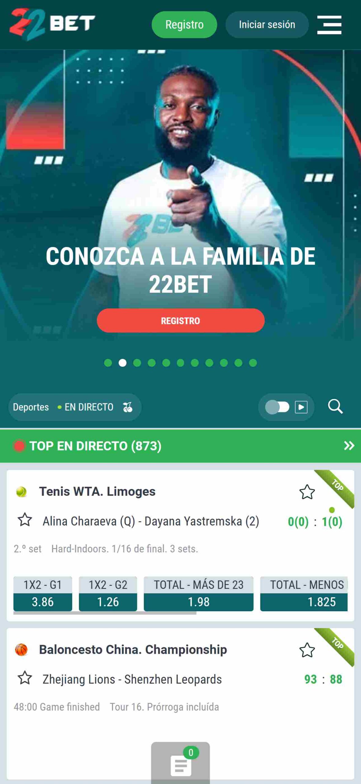 22Bet cuenta con una sección llamada “DIRECTO”, donde puedes disfrutar de ver las retransmisiones de partidos y apostar al instante, es decir, puedes apostar en partidos del Manchester United, el Ipswich town, el Chelsea u otros equipos de tus competencias favoritos mientras suceden en tiempo real.
