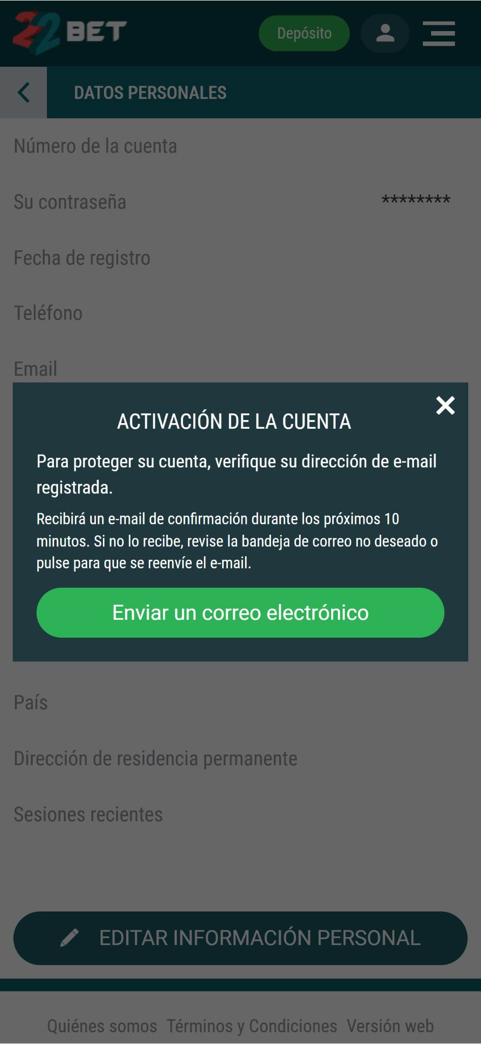 | Correo Electrónico | support-es@22bet.com; security@22bet.com |