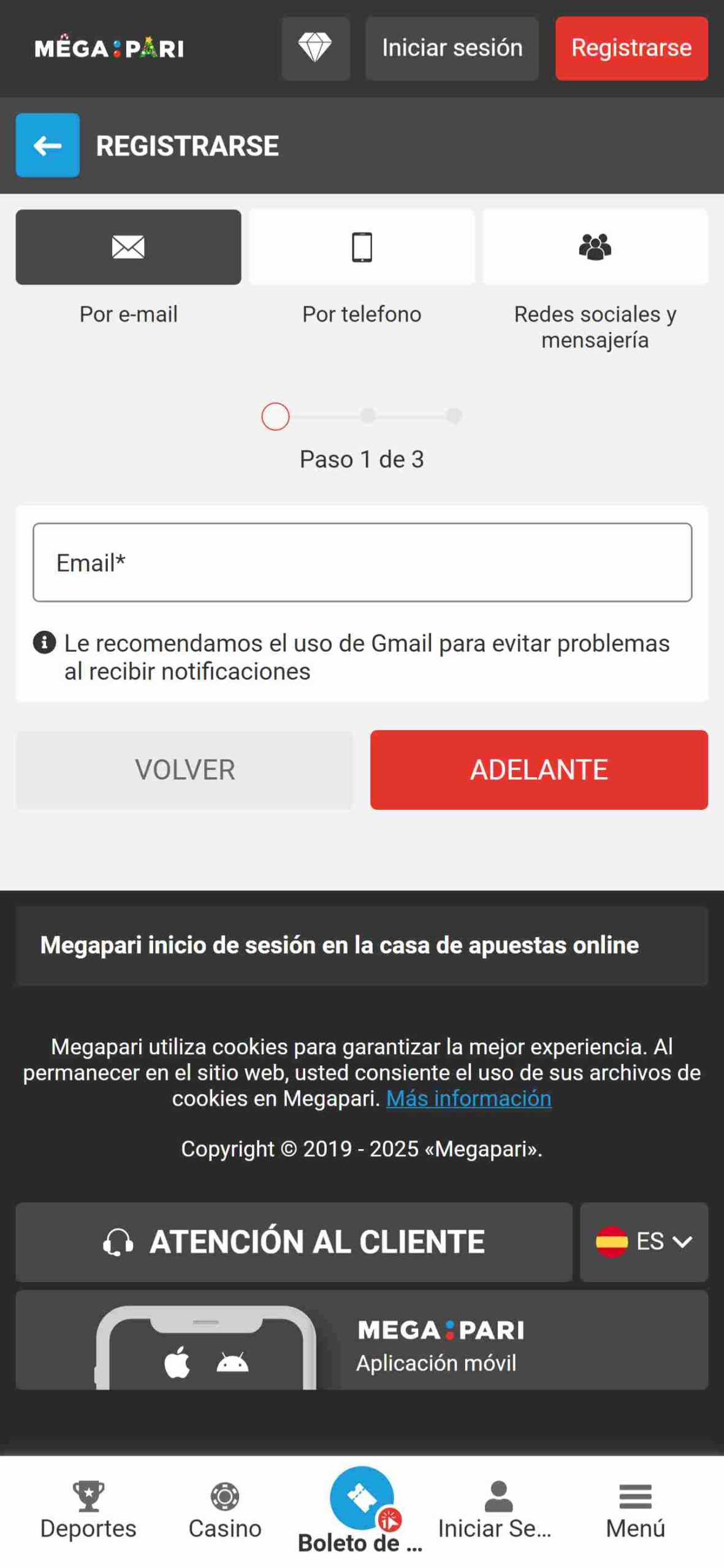- Contactar al sitio por medio de correo electrónico según tu solicitud. El correo general es: soporte@megapari.com.